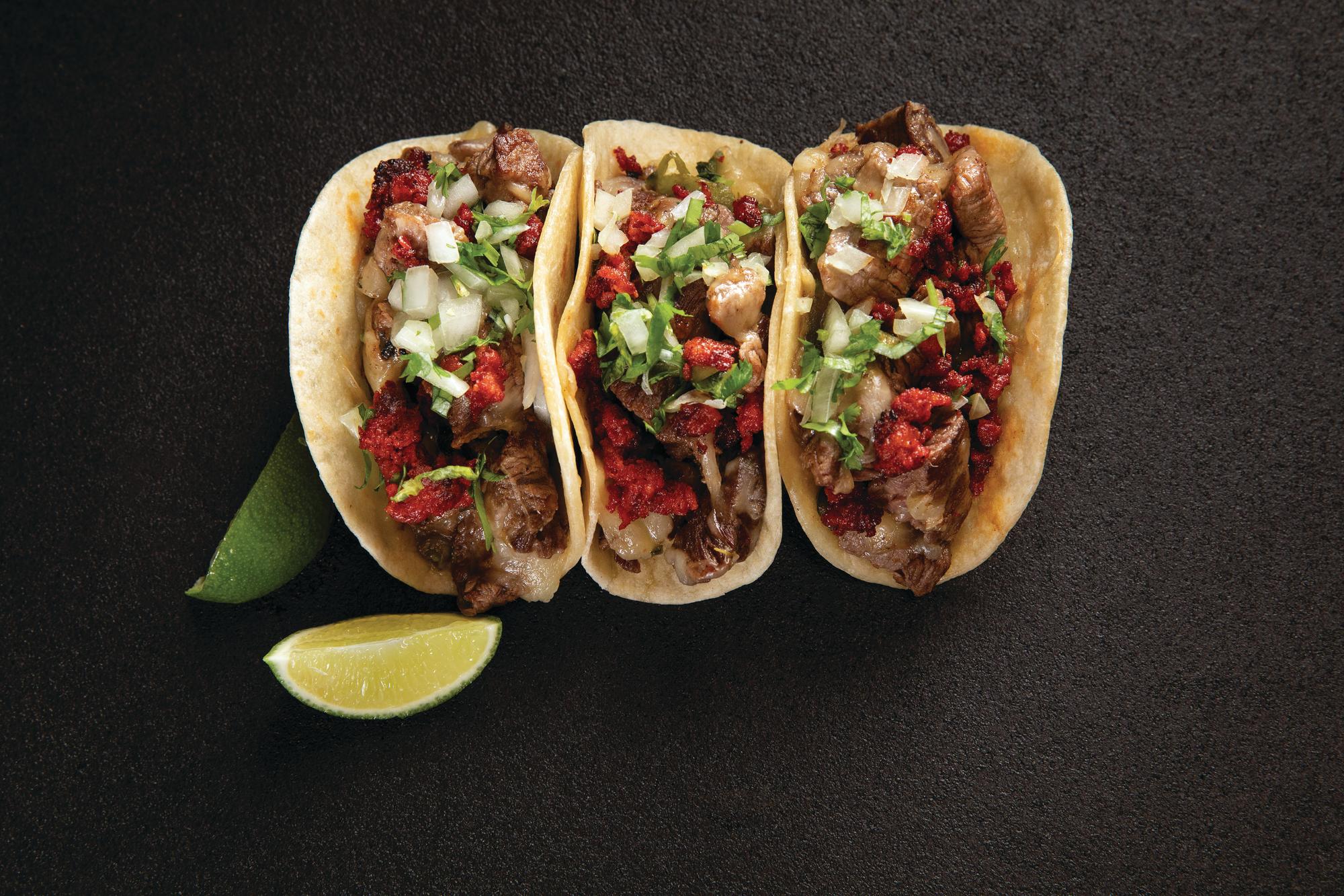 Flour tortilla, filet mignon, chorizo, poblano peppers, OMG cheese blend, cilantro, onion.