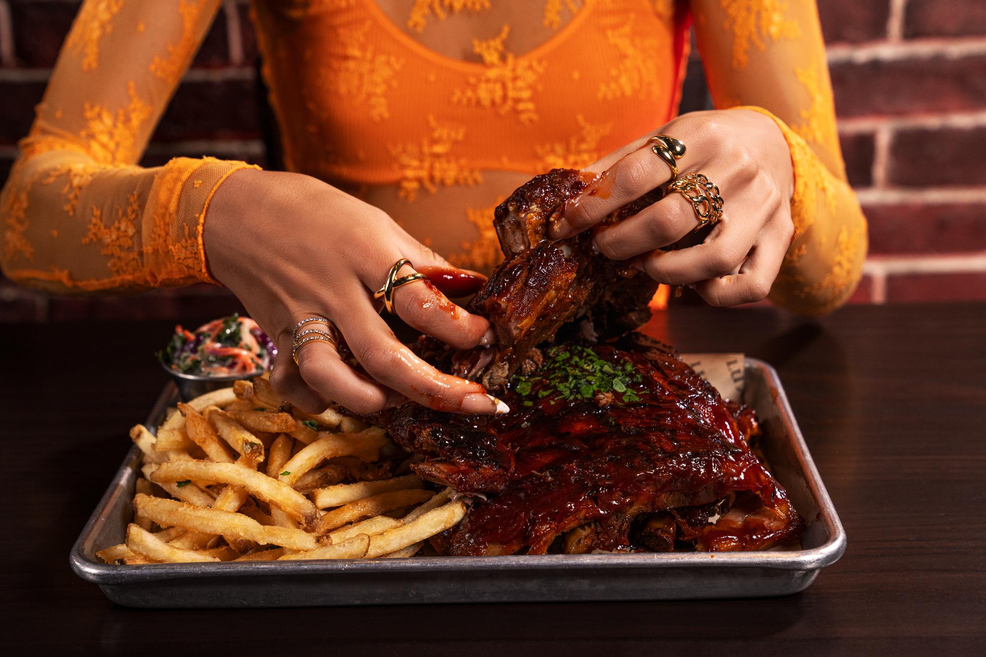 St. Louis-style ribs, bourbon BBQ sauce, fries, coleslaw, jalapeño cornbread